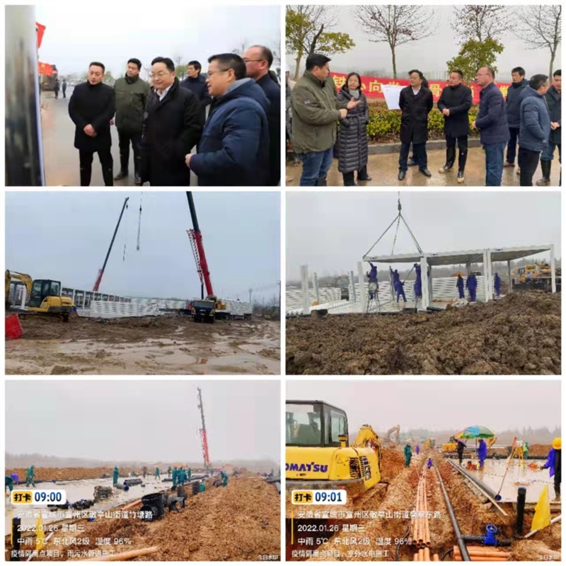 截止126日,現(xiàn)場(chǎng)已完成10000平方米混凝土硬化,雨污水管道、室外水電管道安裝進(jìn)展迅速,集裝箱板房開(kāi)始拼裝。天氣惡劣、工期緊迫,一線(xiàn)人員努力克服各種困難和障礙,迎難而上。125日下午,區(qū)政府召開(kāi)宣州區(qū)新冠肺炎疫情防控工作專(zhuān)題會(huì)議,審定了隔離點(diǎn)項(xiàng)目方案,明確了相關(guān)事項(xiàng),會(huì)議對(duì)施工進(jìn)度和現(xiàn)場(chǎng)管理給予了充分的肯定,同時(shí)也要求在嚴(yán)把工程質(zhì)量關(guān)和隔離點(diǎn)各項(xiàng)要求的基礎(chǔ)上,倒排工期,加快施工,確保早日交付使用。
