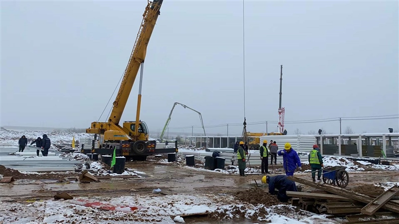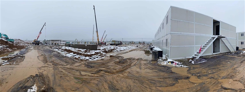 2月8日,新年的第一場暴雪終于遏制住怒吼,各搶建班組全力加速推進準備區(qū)折疊房和隔離區(qū)打包房的安裝,室內(nèi)淋浴房、水電及室外電力電纜井砌筑等多個作業(yè)面施工全面展開,現(xiàn)場掀起節(jié)后施工新一輪大干熱潮。