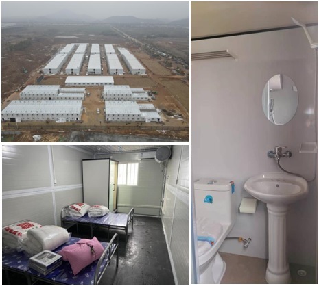 “越是艱難,越要咬緊牙關(guān)挺過去”,項(xiàng)目現(xiàn)場(chǎng)負(fù)責(zé)人說。在施工、采購、調(diào)度各環(huán)節(jié),國資集團(tuán)不斷創(chuàng)新,會(huì)同各參建單位想盡一切辦法為項(xiàng)目建設(shè)提速,截至2月19日,準(zhǔn)備區(qū)折疊房、緩沖區(qū)活動(dòng)板房、隔離區(qū)打包房、污水處理點(diǎn)用房已安裝完成,室內(nèi)水電、家具、電器已完成90%,室外附屬工程已基本完成。已建成的折疊房和打包房,配備了空調(diào)、熱水器、淋浴房、馬桶、洗手臺(tái)、床、被單、棉被、枕頭、桌子、凳子等,必需的生活配套一應(yīng)俱全。